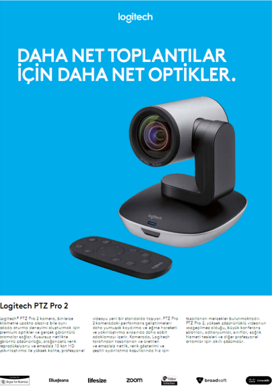 Logitech PTZ Pro 2, hem küçük hem de orta büyüklükteki toplantı odaları için uygun fiyatlı video konferans kamerasıdır. HD görüntü kalitesi ve 10 kat yakınlaştırma özelliği sayesinde tüm ayrıntıları video konferans görüşmeler sırasında rahatlıkla görebilmenize olanak sağlar. Uygun mikrofon seçimi ile 14-20 kişilik toplantı odaları için ideal bir video konferans çözümüdür.