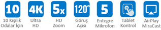 7,6 metre kapsama alanına sahip entegre mikrofon ve tek ekran bağlantı bağlantı notası ile en fazla 10 kişilik toplantı odaları için tasarlanmıştır.