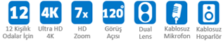 120° genel görüş açısı, 5x dijital yakınlaştırma (zoom), UHD 2160p (4K) yüksek çözünürlük ve daha üretken konferanslar için yeni nesil otomatik çerçeveleme ve izleme teknolojilerine sahip entegre kamera ile Studio X50 küçük toplantı odaları için optimum çözümdür.