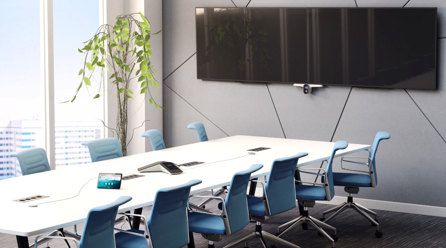 Poly Studio E70, geniş açı ve dar lens arasında fark edilmeden geçiş yapma özelliğine sahip büyük toplantı odaları sağlar.