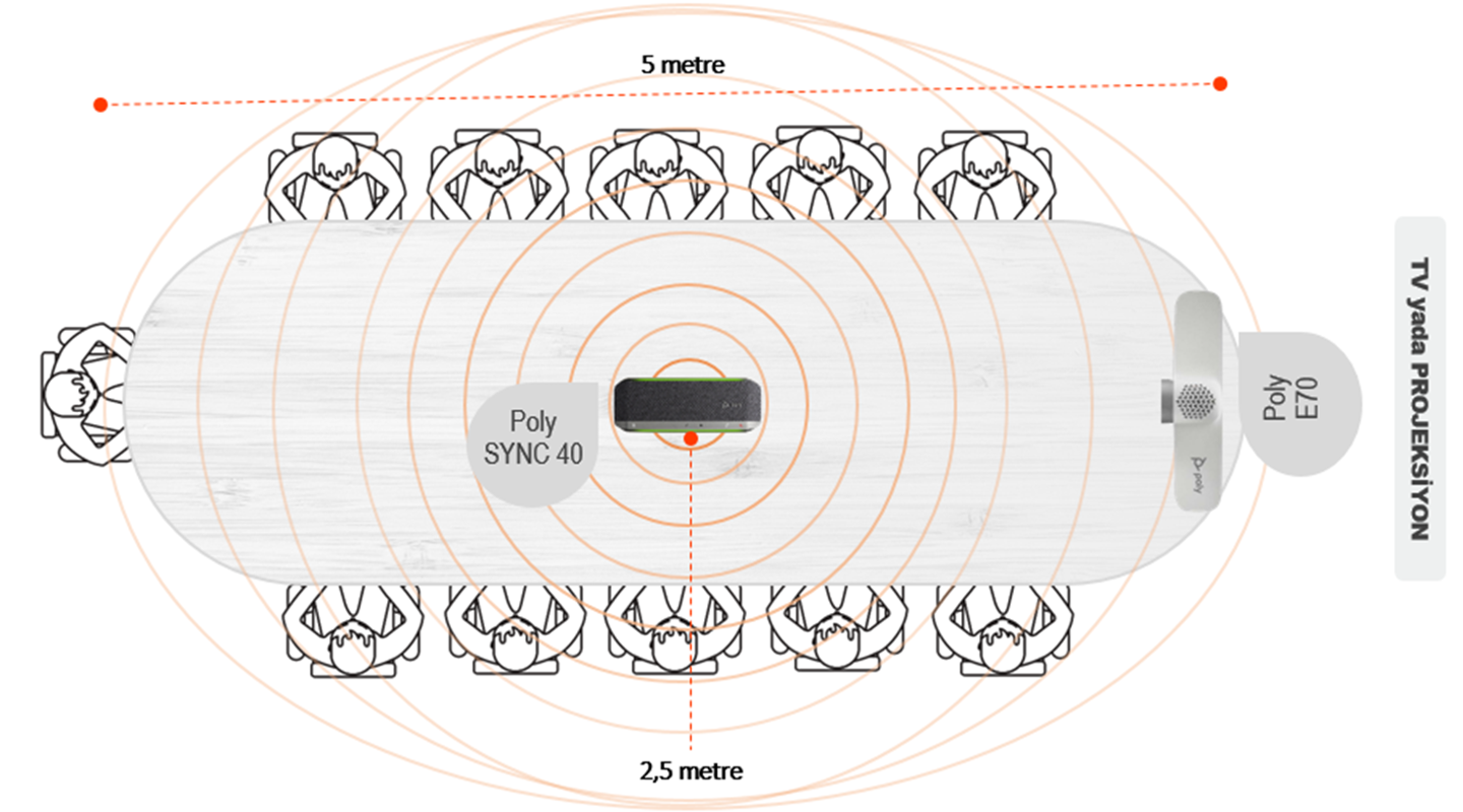 Poly SYNC 40, 5 metre uzunluğa kadar orta büyüklükteki alanları tamamen kaplamak için cihaz içinde bulunan 3 adet mikrofon ve hoparlöre sahiptir. Çoklu mikrofon dizisi konuşmalara odaklanır, yankı ve gürültünün toplantılardan uzak tutulmasına yardımcı olur. Tam çift yönlü ses, kullanıcılar birbirleriyle konuşurken bile konuşmaların doğal bir şekilde akmasını sağlar.Daha büyük toplantı odalarında 2 adet SYNC 40 birlikte kullanılabilir.