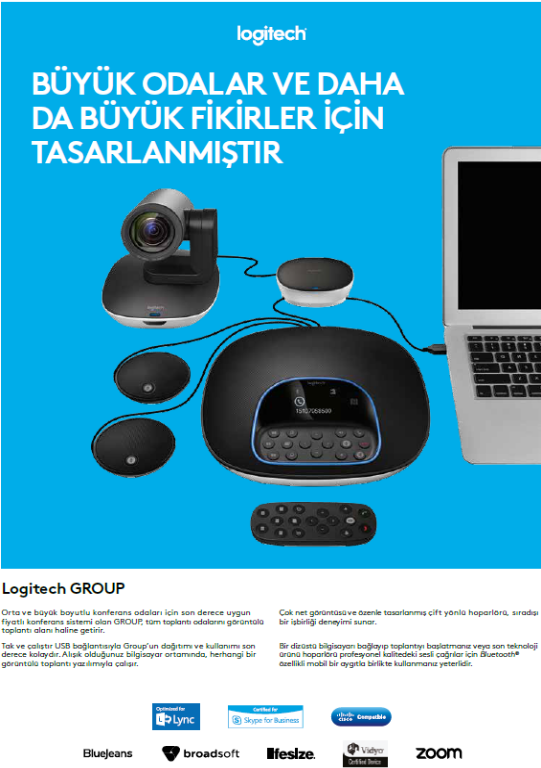 Logitech Group, hem orta hem de büyük boyutlu toplantı odaları için uygun fiyatlı video konferans kamerası. HD görüntü kalitesi ve 10 kat yakınlaştırma özelliği sayesinde tüm ayrıntıları rahatlıkla görebilirsiniz. 14 kişilik toplantı odaları için ideal bir video konferans çözümü olan Logitech Group ürünü opsiyonel olarak satın alabileceğiniz ilave mikrofonları ile 20 kişilik odalarda da kullanım imkanı sağlar.